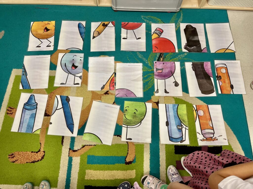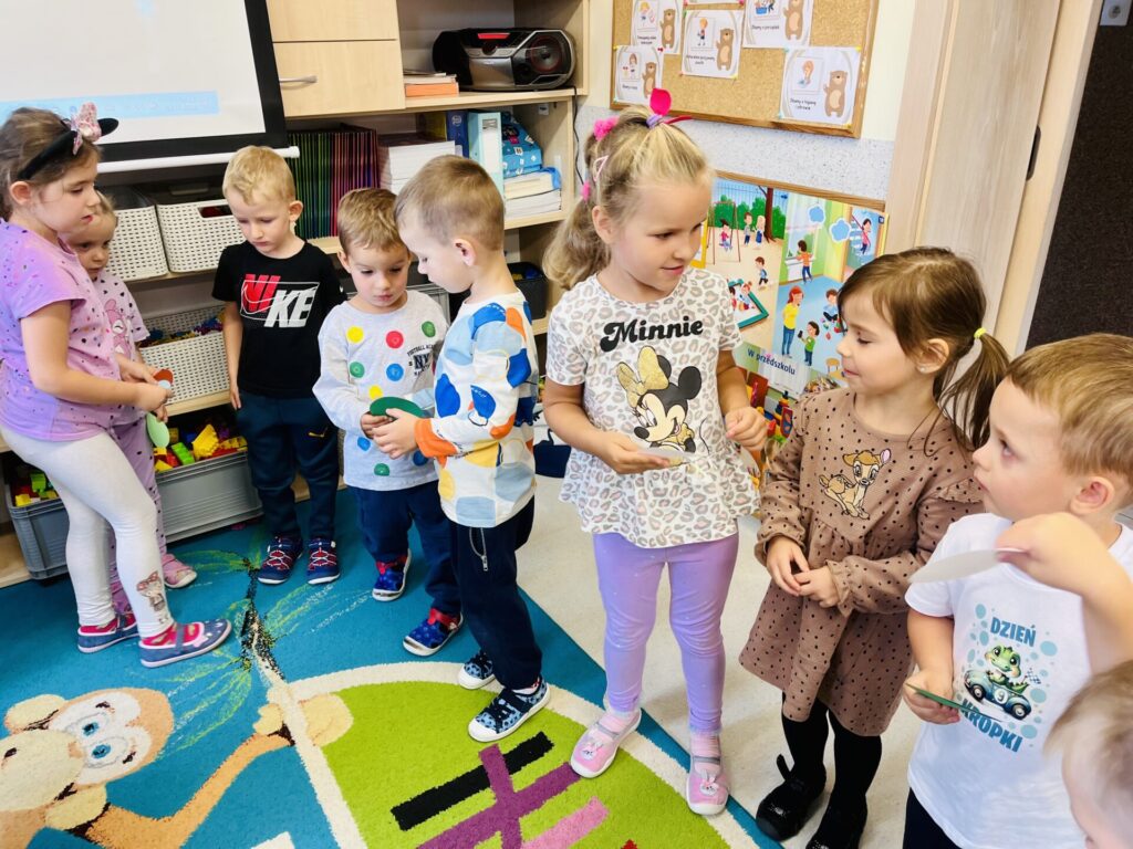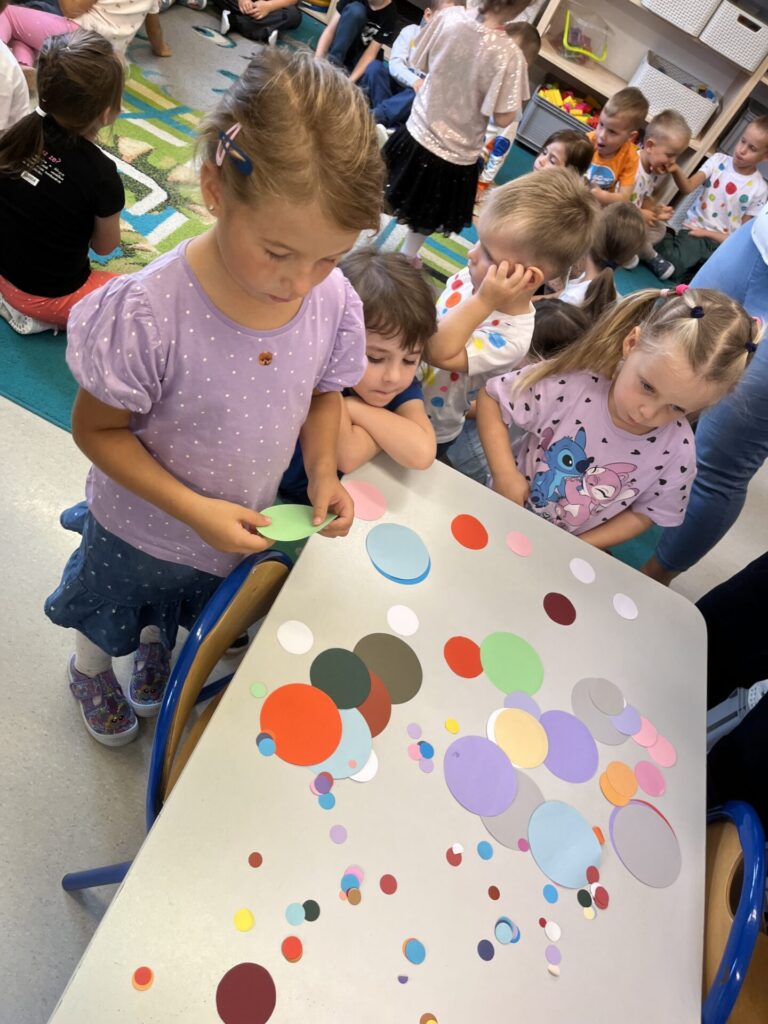 sortowały kropki według kolorów i rozmiarów, rozwijając logiczne myślenie i umiejętność klasyfikowania,