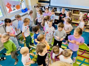 Tego dnia dzieci przyszły do przedszkola ubrane w stroje z motywem kropek – było kolorowo, radośnie i bardzo pomysłowo! Już od rana panowała wyjątkowa atmosfera, a każda grupa przedszkolna brała udział w specjalnie przygotowanych zajęciach, które pobudzały wyobraźnię i zachęcały do twórczego działania.