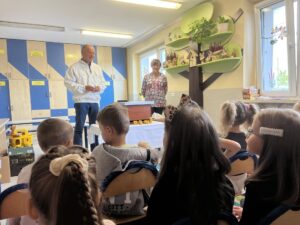 W czwartek, 25 września, w naszym Przedszkolu Publicznym w Górkach odbyły się warsztaty edukacyjne z pszczelarzem. Było to niezwykle ciekawe i inspirujące spotkanie, które przybliżyło dzieciom fascynujący świat pszczół oraz tajniki pracy pszczelarza.