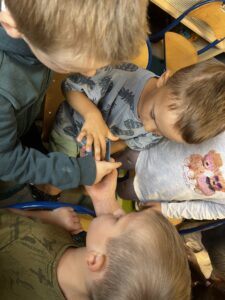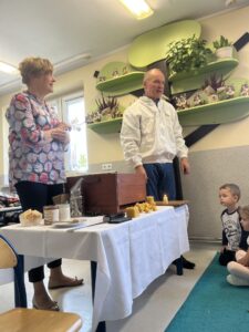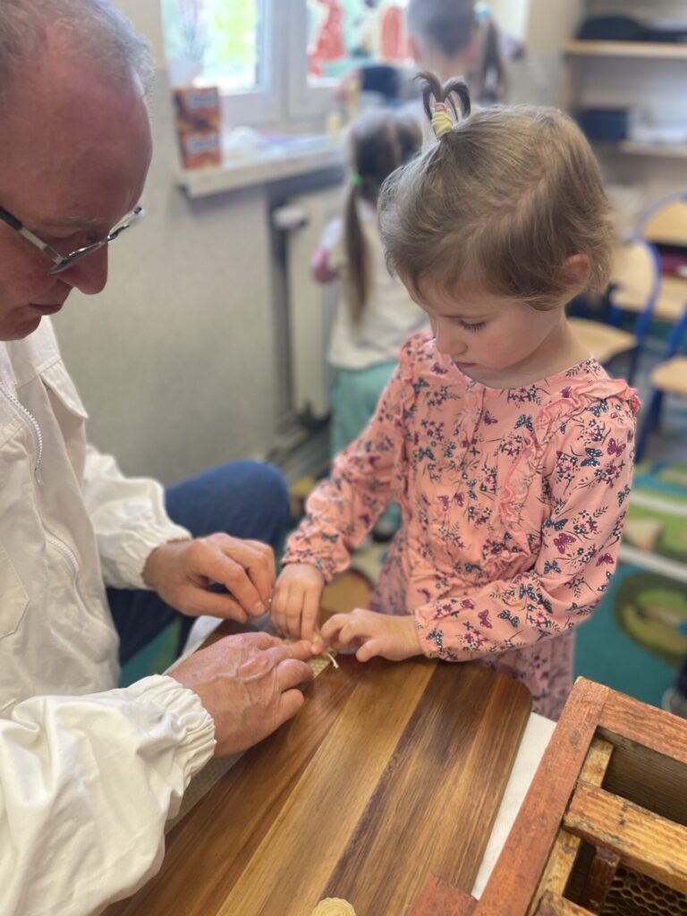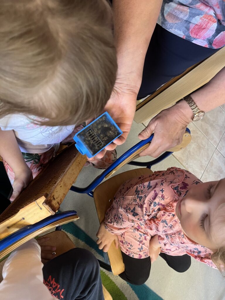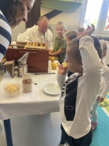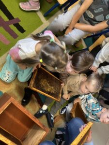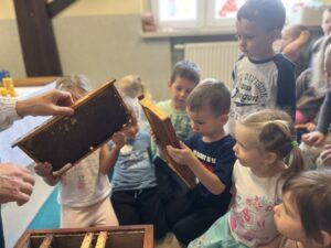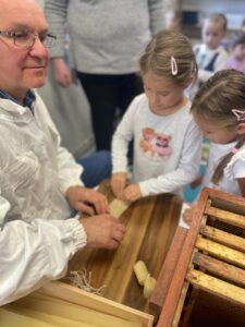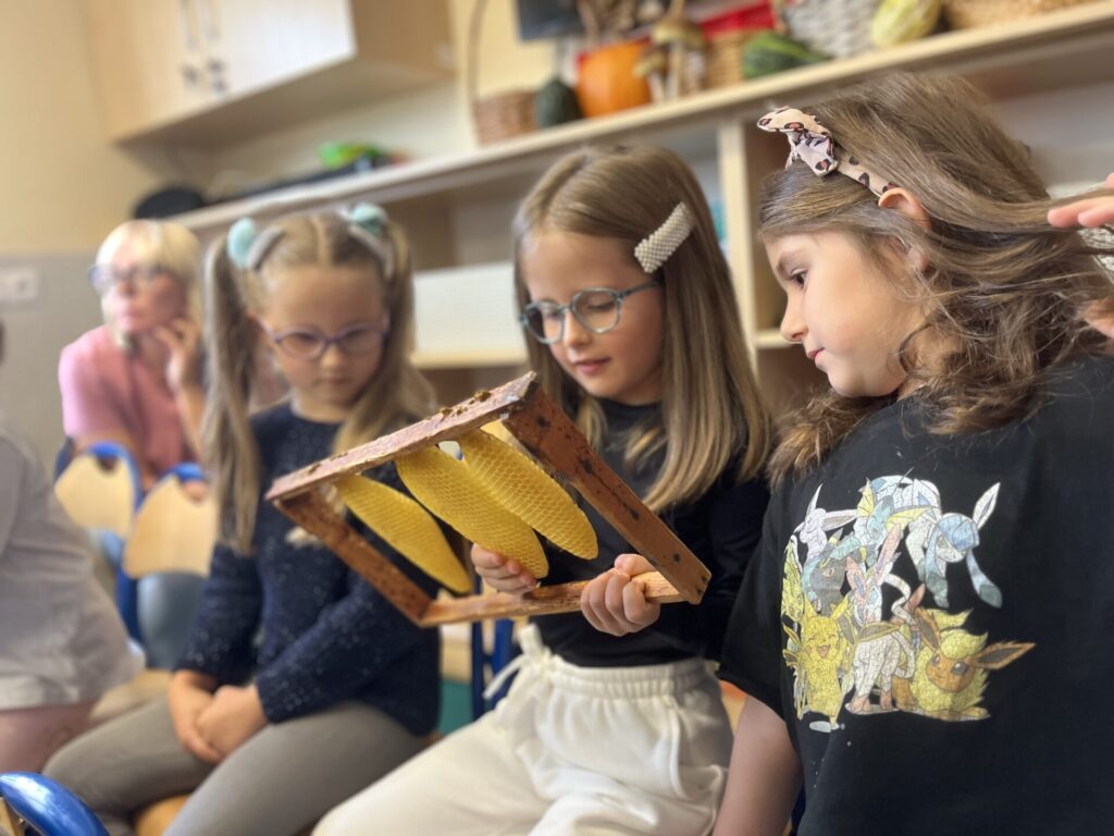 Podczas warsztatów dzieci miały okazję zobaczyć z bliska prawdziwy ul, poznać narzędzia wykorzystywane przez pszczelarzy, a także dowiedzieć się, jak powstaje miód – od pracy pszczół po słoiczek na naszym stole. Największą atrakcją była możliwość przymierzenia stroju pszczelarskiego oraz obserwacja pszczół w specjalnym, bezpiecznym ulu pokazowym.