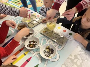 W ostatnich dniach w Przedszkolu Publicznym w Górkach odbyły się wyjątkowe warsztaty kreatywne, które przygotowała Pani Adriana Szutt – mama jednego z naszych przedszkolaków. Dzieci miały okazję odkryć zupełnie nowe doświadczenia sensoryczne, tworząc własne, niepowtarzalne zawieszki z wosku sojowego.
