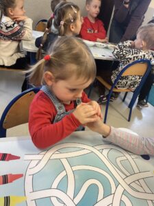 Warsztaty dostarczyły dzieciom mnóstwo radości – rozwijały ich zmysły, pobudzały wyobraźnię oraz pozwoliły poczuć dumę z samodzielnie wykonanych dekoracji.