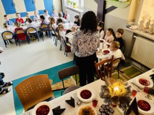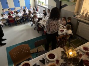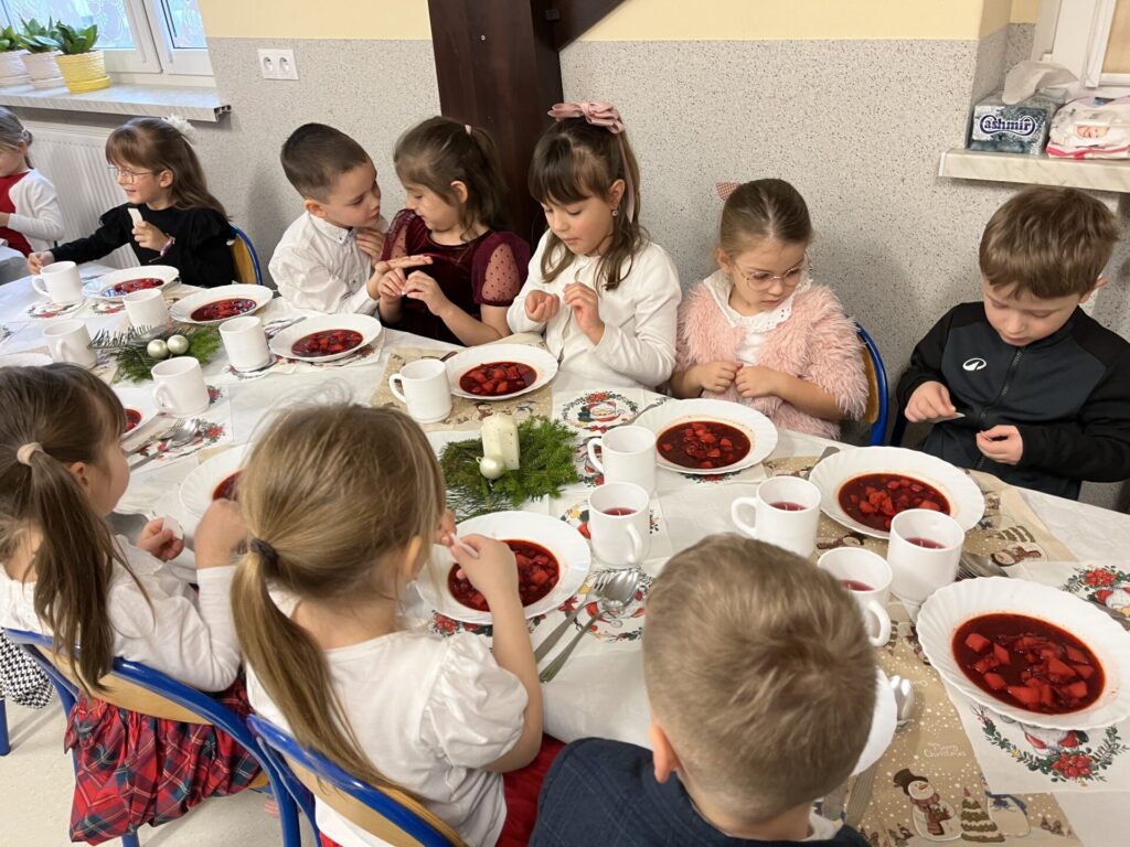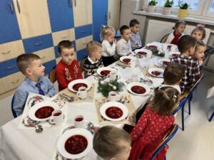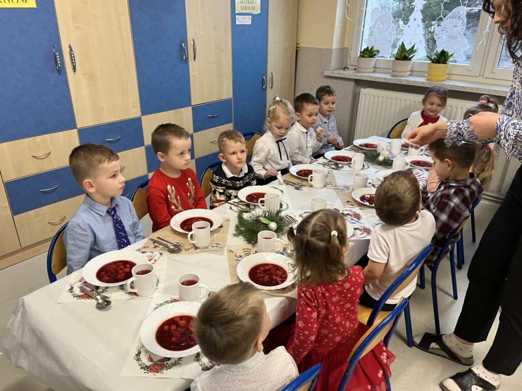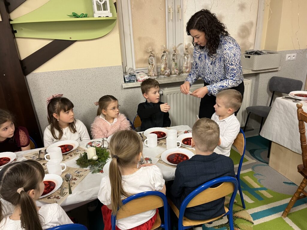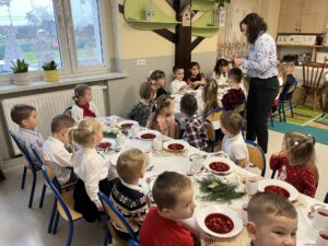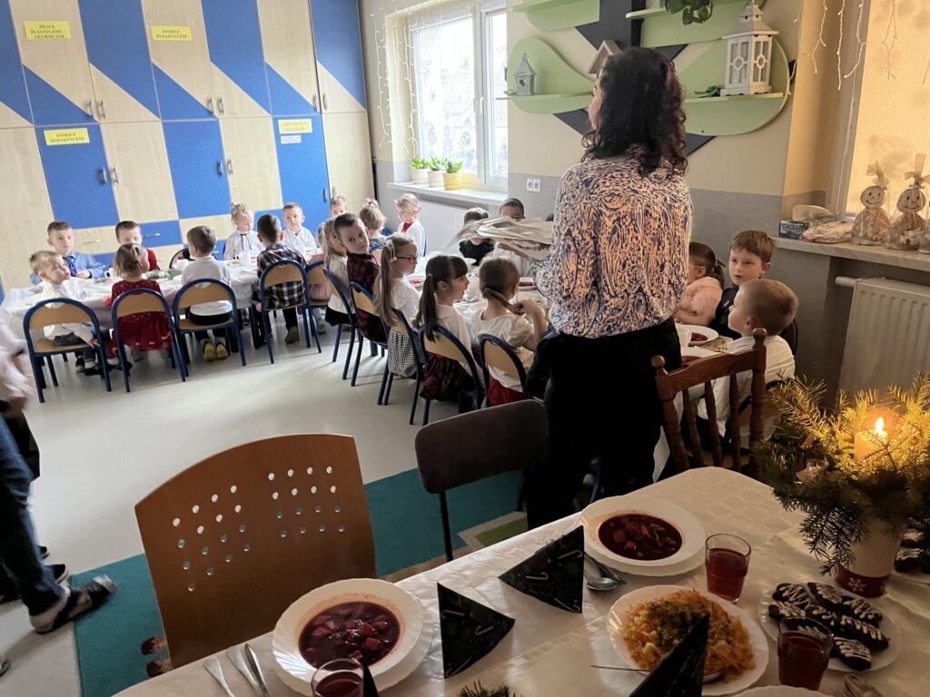W wyjątkowej, pełnej ciepła i radości atmosferze odbyła się Wigilia Przedszkolna w Publicznym Przedszkolu w Górkach. Był to czas wspólnego świętowania, przepełniony tradycją, życzliwością i dziecięcą radością. W odświętnie udekorowanej sali, przy dźwiękach kolęd i pastorałek, przedszkolaki złożyły sobie świąteczne życzenia oraz podzieliły się opłatkiem. Nie zabrakło także wspólnego śpiewania, rozmów o bożonarodzeniowych tradycjach oraz uroczystego, wigilijnego poczęstunku. Wigilia Przedszkolna była dla dzieci nie tylko okazją do poznawania polskich tradycji, ale także do nauki empatii, wzajemnego szacunku i bycia razem. To wyjątkowe spotkanie na długo pozostanie w naszej pamięci.
